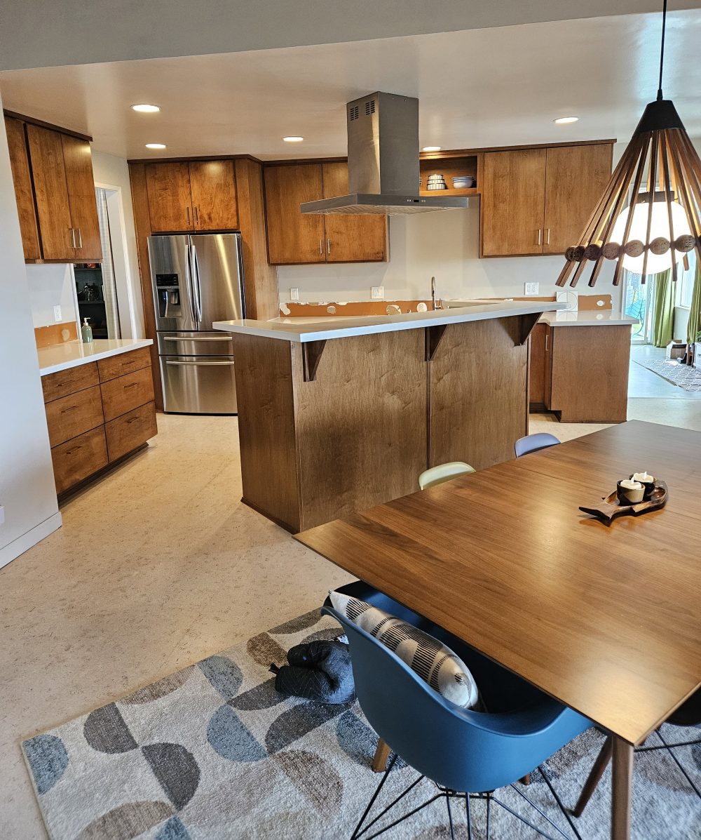 This gorgeous kitchen remodel has Solid Maple Revere Hardwood Doors with a lighter granite counter top for a great contrast.